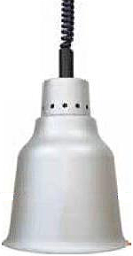 Цвет плафона "алюминий", ИК-нагрев, механизм регулировки и фиксации по высоте, диаметр 190 мм (h-250мм), подвесной. Минимальному расстоянию до нагреваемого продукта –0, 3 м. Диапазон регулировки по высоте от 48cm до 155cm. Лампа ИК нагрева входит в комплектацию(цоколь - Е27).