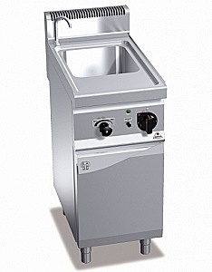 Макароноварка электрическая расположена на закрытом стенде с 1 дверцей. Идеально подходит для приготовления разных видов макаронных изделий одновременно (макароны, вермишель, лапша, спагетти, пельмени и вареники), а также гарнира. Особенность макароноварки состоит в том, что в ней используется способ быстрого приготовления макарон, поддерживается постоянный уровень воды и исключается образование пены, обеспечивая тем самым легкость уборки и гигиену машины. Модель оснащена 1 ванной вместимостью 30 л, краном для заливки воды, и фальш-дном для поддержки корзин. Производительность до 15кг/ч при рабочей температуре от +20/+100С. Оборудование изготовлено из нержавеющей стали и имеет специальное дробеструйное керамическое упрочнение. Ванна имеет закругленные края и изготовлена из нержавеющей стали.