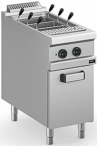 Электрическая макароноварка APACH Cook Line APPE-49P/PL 900-й серии предназначена для варки пасты, спагетти и других изделий из теста. Оснащена закрытой подставкой и регулируемыми по высоте ножками. Столешница, вентиляционная решётка и передняя панель выполнены из нержавеющей стали AISI 304 толщиной 1 мм, боковые и задние панели, дверца – из нержавеющей стали AISI 430 толщиной 1 мм, ванна – из нержавеющей стали AISI 316, нагревательные элементы – из армированной нержавеющей стали.