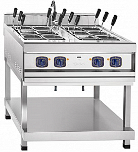 Все элементы конструкции выполнены из качественной нержавеющей стали. Электроварка имеет регулируемые по высоте ножки.