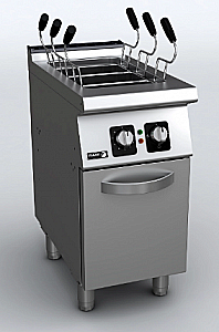 Электрическая макароноварка Fagor CP-E7140 функциональна и надежна, отличается высокой производительностью (около 1 кг макаронных изделий на каждые 10 литров) и может применяться для различных целей. Помимо макаронных изделий в ней можно отваривать рис или овощи. Оснащена электромеханической системой залива воды и шаровым вентилем для слива в канализацию.