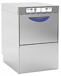Стаканомоечная машина, 20 корзин / час, двустенные, направляющие глубокой вытяжки, бойлер высокого давления, термостат, электромеханическое управление, дозатор ополаскивателя.