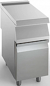 Нейтральный блок 40 см, моноблок на шкафу. Столешница из нержавеющей стали (AISI 304), толщина 20/10, предварительно приспособлена для непосредственного соединения и установки смесителя (опция). Регулируемые по высоте ножки из нержавеющей стали.