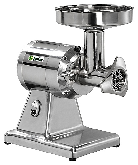 Мясорубка FIMAR 12/TS Unger 220 В предназначена для измельчения мяса и рыбы на фарш, повторного измельчения котлетной массы и набивки колбас на предприятиях общественного питания и торговли. Модель оснащена режущей системой полный унгер, съемным режущим узлом, зубчатым редуктором в масляной ванне. Внутренние детали съемные, что удобно для их мытья в посудомоечной машине. Корпус выполнен из полированного алюминия, самозатачивающийся нож, решетка, бункер и извлекаемый режущий узел - из нержавеющей стали.