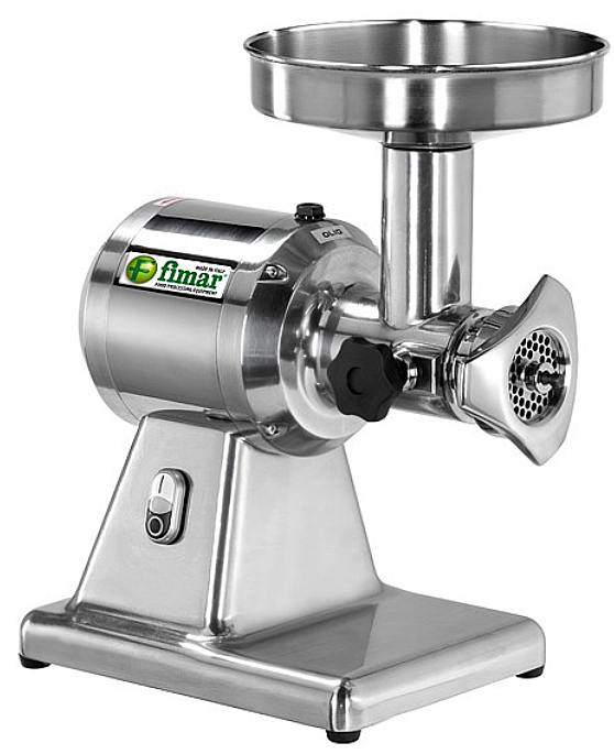 Каркас из полированного алюминия, бункер из нерж стали, режущий узел стандартный, ,комплект:крестовой нож и решетка (отверстия диам 6 мм).