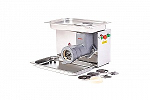 Промышленная Мясорубка ТМ-50 проста и надежна в эксплуатации, укомплектована полным унгером (подрезной нож, двусторонний нож, решётка крупная, двусторонний нож, решётка мелкая). Оснащена реверсом, исключающим необходимость разборки мясорубки. Максимальная производительность мясорубки при измельчении говядины через решётку с диаметром отверстий 9 мм составляет 500 кг/ч