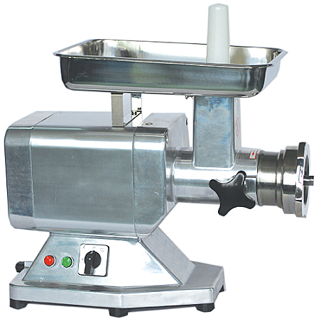 Профессиональная мясорубка для быстрой и качественной переработки мяса на фарш. Бункер и корпус выпонены из нерж.стали. Для предотвращения перегрузок двигателя, при наматывании жил на ось шнека, в модели предусмотрена функция реверса. Достаточно остановить мотор и некоторое время удерживая нажатой кнопку реверса. Шнек мясорубки начнет вращаться в другую сторону, и жила выходит наружу. Для получения фарша разной степени измельчения мясорубки снабжаются набором решеток с различным диаметром отверстий.