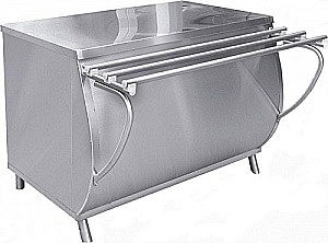 Прилавок используется для хранения и раздачи горячих напитков и мучных изделий, оборудован розеткой для подключения термостата или кипятильника, нейтральным шкафом, регулируемыми ножками.