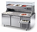 Пиццерийный стол – это главный элемент рабочего места пиццайоло (человека, который готовит пиццу). Он состоит из непосредственно охлаждаемого покрытия (часто применяется натуральный камень, гранит или мрамор), которое не дает тесту нагреваться и из охлаждаемого внутреннего объема. Иногда столы для пиццы комплектуются дополнительной надстройкой с половинчатыми гастроемкостями GN ½, в которых хранятся нарезанные продукты (овощи, мясо, сыр для пиццы). Таким образом, у пиццамейкера все необходимое – под рукой. Плюс, некоторые заготовки содержатся внутри столов, на полках за закрывающимися дверями. Это универсальное оборудование может стоять на кухне пиццерии или в зале для гостей как элемент шоу.