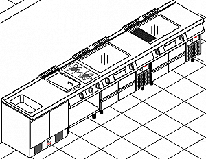 Индукционная варочная поверхность. Верхняя версия. Верхняя плита из нержавеющей стали AISI 304, толщина 15/10, предварительно установлена для соединения «голова-голова», керамическая плита толщиной 6 мм, приклеенная к верхней плите, система обнаружения кастрюли активирует нагрев, как только кастрюля ставится на варочную поверхность. Оборудован 2 независимыми варочными зонами по 3,5 кВт.