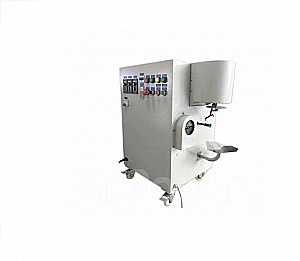 Автомат изготовлен в виде металлического короба на поворотных колесах со стопорными механизмами (наличие колес упрощает перемещение в пределах цеха). Обработка выполняется поштучно, то есть единичный апельсин надевается сердцевиной на вращающийся штырь, выдвинутый из короба. Чтобы он не слетел, на оконечность штыря надевается пластмассовая заглушка. При вращении фрукта к нему под углом подводится острое лезвие, прижим которого регулируется, вследствие чего кожура быстро снимается. Лезвие выполнено из прочной нержавеющей стали, замена лезвия не требует много времени.