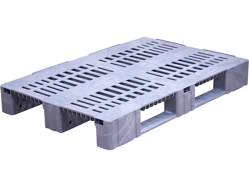 Перфорированный пластиковый паллет на трёх цельнолитых полозьях
