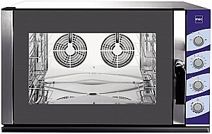 Электрический пароконвектомат с высокой производительностью для гастрономии. Корпус и внутренняя камера из нержавеющей стали, внутреннее освещение галлогеновыми лампами. Вместительность: 5 протвиней GN 1/1 (530x325 мм), расстояние между протвинями 67 мм. Имеет ручной таймер для регулировки окончания времени приготовления 0-120, 2 мотора с реверсивным ходом. Диапозон температуры: 30 - 280 °C. В комплекте: 2 протвиня GN 1/1.