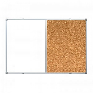 Доска комбинированная Attache. Размер: 90×120 см. Поверхность — магнитно-маркерная лаковая и натуральная пробка. Информацию можно размещать с помощью силовых кнопок, флажков и булавок, а также маркеров сухого стирания и магнитов. Рамка и стык из алюминиевого профиля. Увеличенное рабочее пространство за счет использования утонченной алюминиевой рамы шириной 11 мм.