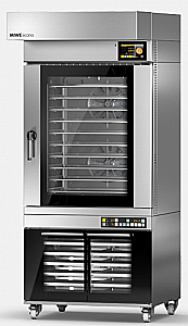 Электрическая конвекционная печь MIWE Econo EC 10.0604 с программным управлением FP, с вытяжным козырьком с вентилятором, расстойной камерой на 12 противней, на роликах 108 мм.