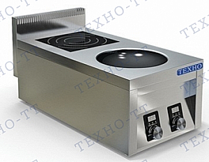 Плита двухконфорочная плоская и вок, мощность 2х3,5 кВт, ВОК диаметром 300мм, борт высотой 100мм, питание 380В