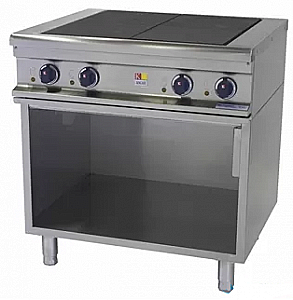 Электромеханическая панель управления размещена в верхней части плиты под конфорками на передней панели. Данное расположение является более удобным для работы поваров (управление - «под рукой»). Для плавного переключения тепловой мощности конфорки используются регуляторы степени нагрева раздельно для каждой конфорки. Благодаря большому числу позиций нагрева удается более точно подобрать режим приготовления для каждого блюда. Для исключения перегрева конфорок установлены блокирующие термостаты. Степень влагозащиты оборудования - IPX4.