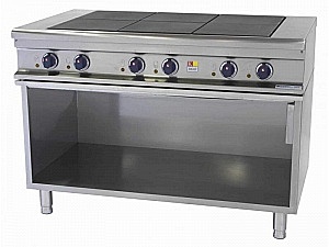 Плита на открытой подставке. Мощность каждой конфорки – 2.5 кВт. Материал корпуса – нержавеющая сталь.