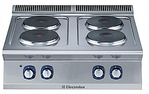 4 чугунные конфорки 2,6 кВт герметично впаяны в штампованную верхнюю панель.