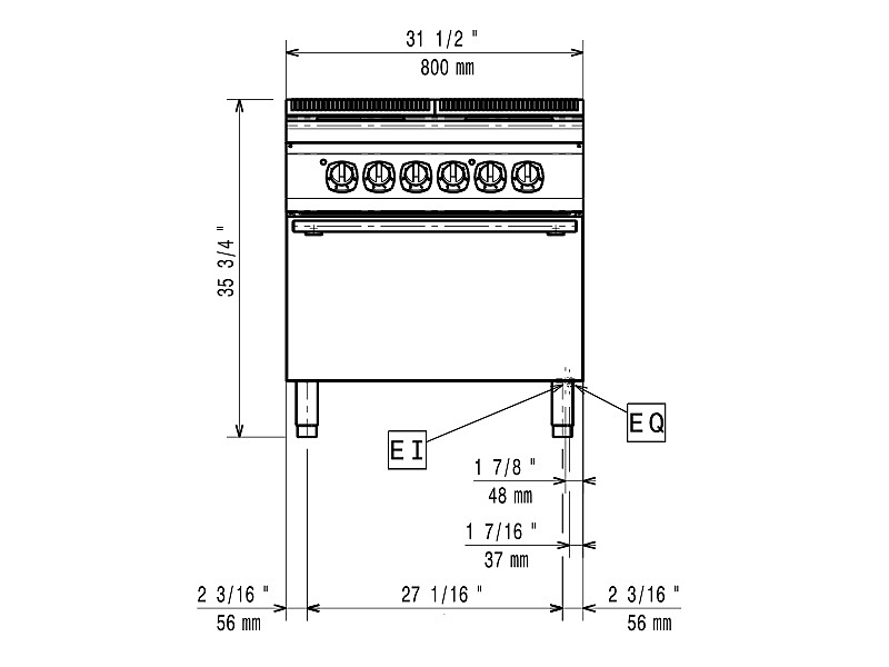 В нижней части модуля расположен электрический жарочный шкаф с дверцей увеличенной толщины для улучшения теплоизоляции.