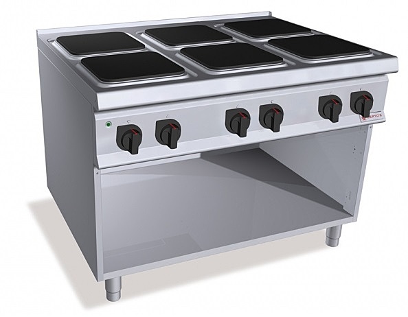 Чугунные конфорки с защитным термостатом и переключателем на 6 положений, включающим 6 различных концентрических зон мощности.