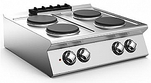 Электрическая плита из нержавеющей стали AISI 304. Круглые конфорки диаметром 220 мм из чугуна мощностью 2,6 кВт.