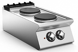 Электрическая плита из нержавеющей стали AISI 304. Круглые конфорки диаметром 220 мм из чугуна мощностью 2,6 кВт.