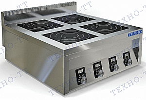 Корпус из нержавеющей стали, конфорки из стеклокерамики. Мощность одной конфорки: 3,5 кВт. Максимальная нагрузка на конфорку: 50 кг. Высота борта: 100 мм. 9 ступеней нагрева. Таймер: от 1 до 99 мин. Требуется подставка ТЕХНО-ТТ СПИ-837/919