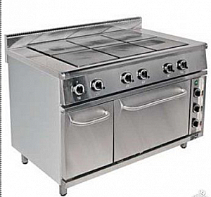 Рабочая температура на поверхности конфорки 400С. Время разогрева до рабочей температуры 25 минут. Рабочая площадь поверхности плиты - 0,54 м2. Конфорки 6 чугунных конфорок размером 300х300 мм, мощность 2,5 кВт - 3 шт., 3,0 кВт -3 шт. Конфорки образуют единую поверхность. Конфорки: ступенчатое регулирование мощности (три режима работы). Духовой шкаф: ступенчатое регулирования мощности (три режима работы) и автоматическое поддержание в камере заданного температурного режима.