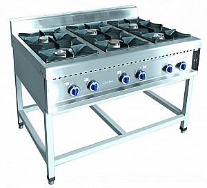 Газовая плита шестигорелочная на подставке ПГК-69П.Предназначена для приготовления первых, вторых и третьих блюд в наплитной посуде.