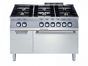 6 высокопродуктивных горелок лепесткового пламени мощностью по 5,5 кВт, пламя подстраивается под диаметр посуды.