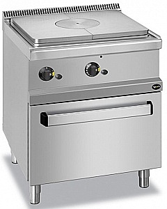 Газовая плита концентрического нагрева Apach APRGS-77FG 700-й серии с чугунной поверхностью толщиной 10 мм поставляется на газовом жарочном шкафу.