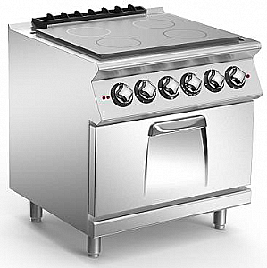 Плита со сплошной поверхностью и духовкой с 4 независимыми зонами, из нержавеющей стали AISI 304.