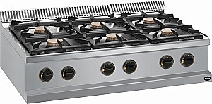 Газовая плита APACH Cook Line APRG-117T 700-й серии предназначена для приготовления и разогрева разнообразных блюд в наплитной посуде. Столешница, вентиляционная решётка и передняя панель выполнены из нержавеющей стали AISI 304 толщиной 1 мм, боковые и задняя панели – из нержавеющей стали AISI 430 толщиной 1 мм, съёмные конфорки – из эмалированного чугуна с латунной крышкой.