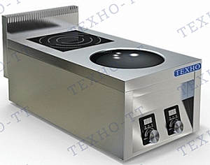 Плита двухконфорочная плоская и вок, мощность 2х3,5 кВт, ВОК диаметром 300мм, борт высотой 100мм