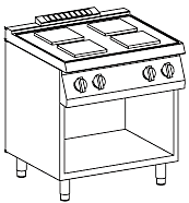 4 квадратные конфорки 220х220 мм, 2,6 кВт каждая