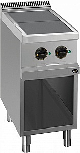 Электрическая плита APACH Cook Line APRE-47QP 700-й серии предназначена для приготовления и разогрева разнообразных блюд в наплитной посуде. Оснащена открытой подставкой и регулируемыми по высоте ножками. Столешница, вентиляционная решётка и передняя панель выполнены из нержавеющей стали AISI 304 толщиной 1 мм, боковые и задняя панели – из нержавеющей стали AISI 430 толщиной 1 мм, квадратные конфорки – из чугуна.