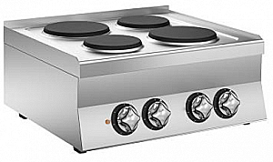 Форма конфорок: круглая. Четыре конфорки на 2,6 кВт диаметром 220 мм.