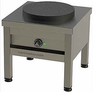 Плита-табурет электрическая с 1 чугунной конфоркой диаметром 400мм, бесступенчатой регулировкой мощности, открытым стендом, изготовлена из высококачественной нержавеющей стали. Ножки регулируются по высоте. Благодаря гладкому корпусу плиту очень легко мыть.