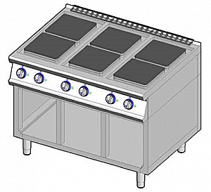 Мощность конфорок 4 x 3,0 кВт и 2 x 4,0 кВт, с предохранительными тепловыми выключателями