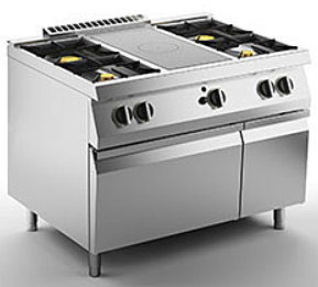 Оснащен регулируемыми по высоте ножками из нержавеющей стали.