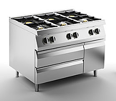 Оснащен регулируемыми по высоте ножками из нержавеющей стали.