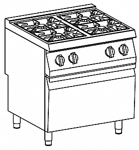 4 конфорки: 3*6 кВт, 1*9кВт