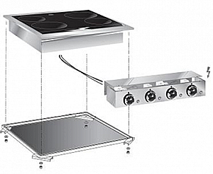 4 рабочих зоны: 2 x 2,4 kW Ø 24 mm. 1 x 1,8 kW Ø 180 mm. 1 x 1,2 kW Ø 145 mm