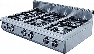 6 профессиональных горелок класса Heavy Duty, 4 горелки по 6.5 кВт, 2 - 9 кВт, газовая мощность 44 kW, газконтроль.