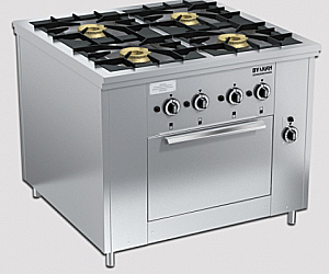 Съёмная подконфорочная емкость и корпус из высококачественной нержавеющей стали значительно облегчают уход за плитой. Плита оснащена системой газконтроля, исключающей утечку газа, и может работать как на природном, так и на сжиженном газе. Все горелки имеют пьезоподжиг.