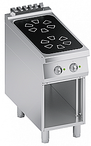 Квадратные зоны нагрева размером 270х270 мм мощностью 7 кВт, закрепленные под стеклом, контролируемые потенциометром с 9 уровнями мощности.