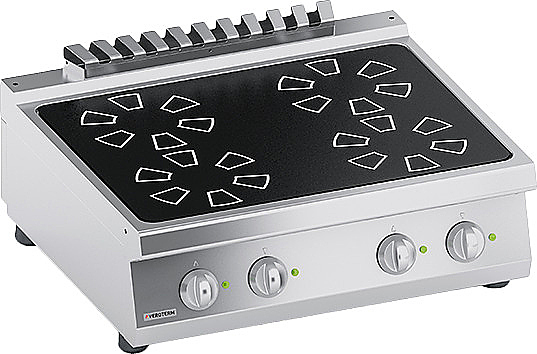 Настольная индукционная плита VEROTERM VT7CIE10TT используется на предприятиях общественного питания и торговли для приготовления широкого ассортимента блюд в наплитной посуде. Принцип работы основан на непосредственном нагреве металлической посуды создаваемыми высокочастотным магнитным полем индуцированными вихревыми токами. Модель оснащена 4 варочными зонами, фронтальной электромеханической панелью управления и дисплеями индикации на рабочей поверхности. Корпус выполнен из нержавеющей стали AISI 430, рабочая поверхность – из высококачественной стеклокерамики черного цвета.