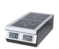 электрическая, индукционная, 2 зоны нагрева, размер конфорки 320х340 мм, толщина стекла 4 мм, сенсорное и механическое управление с ЖК-дисплеем, увеличенная в диаметре катушка - 230 мм, 10 уровней мощности, мощность 1 зоны 3.5 кВт, диапазон температур 40-280 С, электронный таймер 0-24 ч, максимальный допустимый вес на 1 конфорку до 30 кг, min диаметр посуды 100 мм, выполнена полностью из нерж.стали