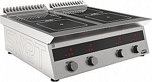 Индукционная плита SMART INDUCTION C74-5N предназначена для приготовления и быстрого разогрева блюд на предприятиях общественного питания и торговли. Модель оснащена электронно-механической панелью управления с индикацией, съемным жировым фильтром для отделения жира и влаги от поступающего внутрь аппарата воздуха и регулируемыми по высоте ножками. Корпус, столешница и воздуховод выполнены из нержавеющей стали AISI430, рабочая поверхность - из стеклокерамики, передняя панель - из нержавеющей стали.